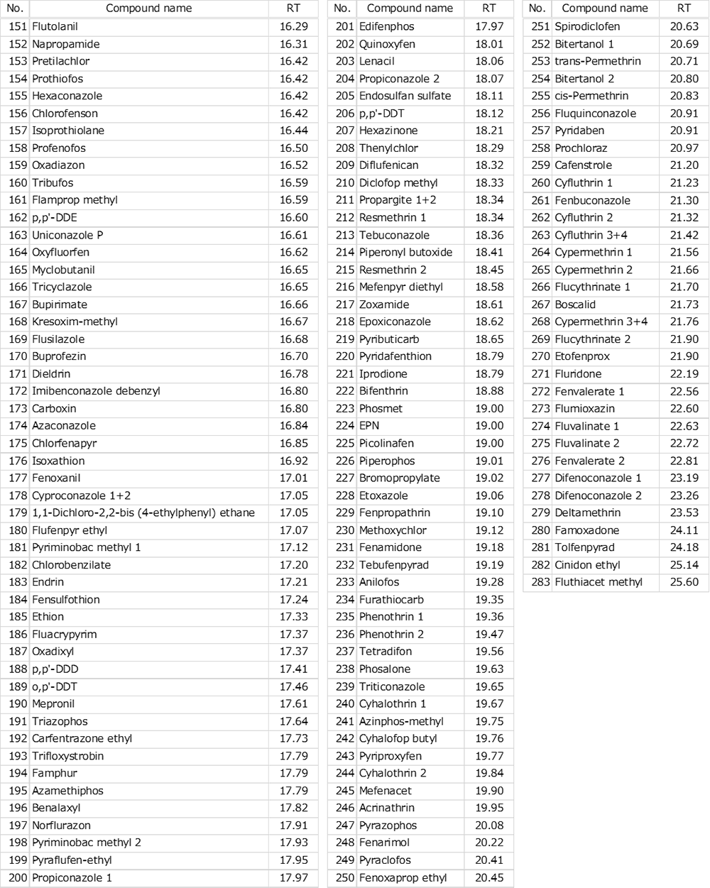 待测农药清单(No151-283)