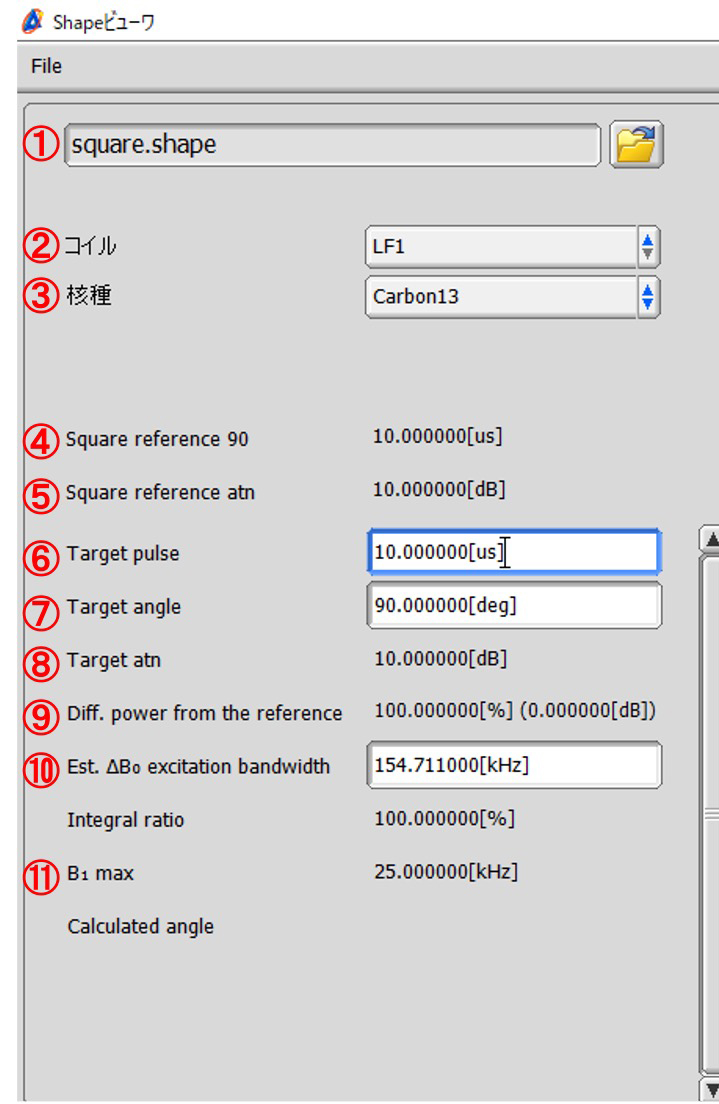 | ①形状文件 | 指定包含有关无线电波强度和脉冲相位的时间变化信息的形状文件。 |
