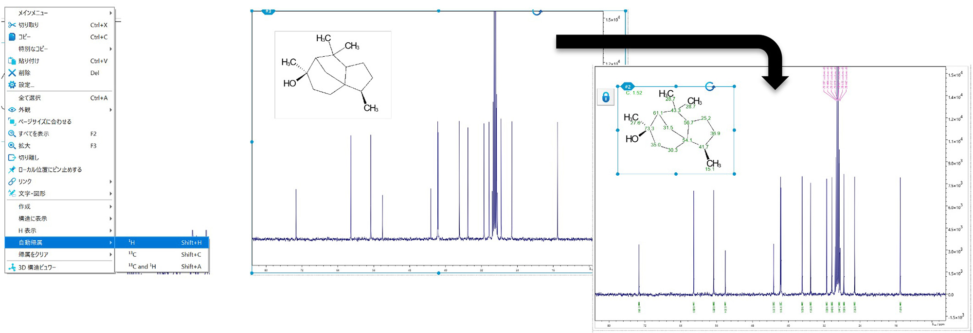 JASON 允许您自动将测量光谱的峰分配给结构式。