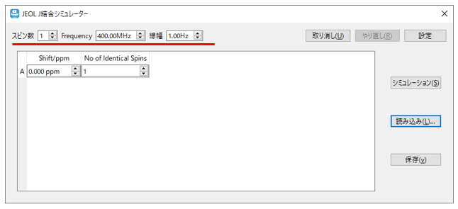 这里,“自旋数”是NMR信号的数量,“频率”是1H 的共振频率和 NMR 信号的半宽度。由于用于耦合模拟,自旋数通常选择2以上。
