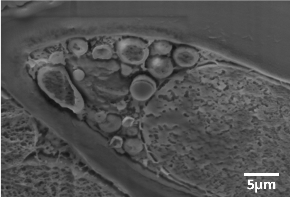 加速电压:10 kV,背散射电子图像,无处理低真空模式:50 Pa