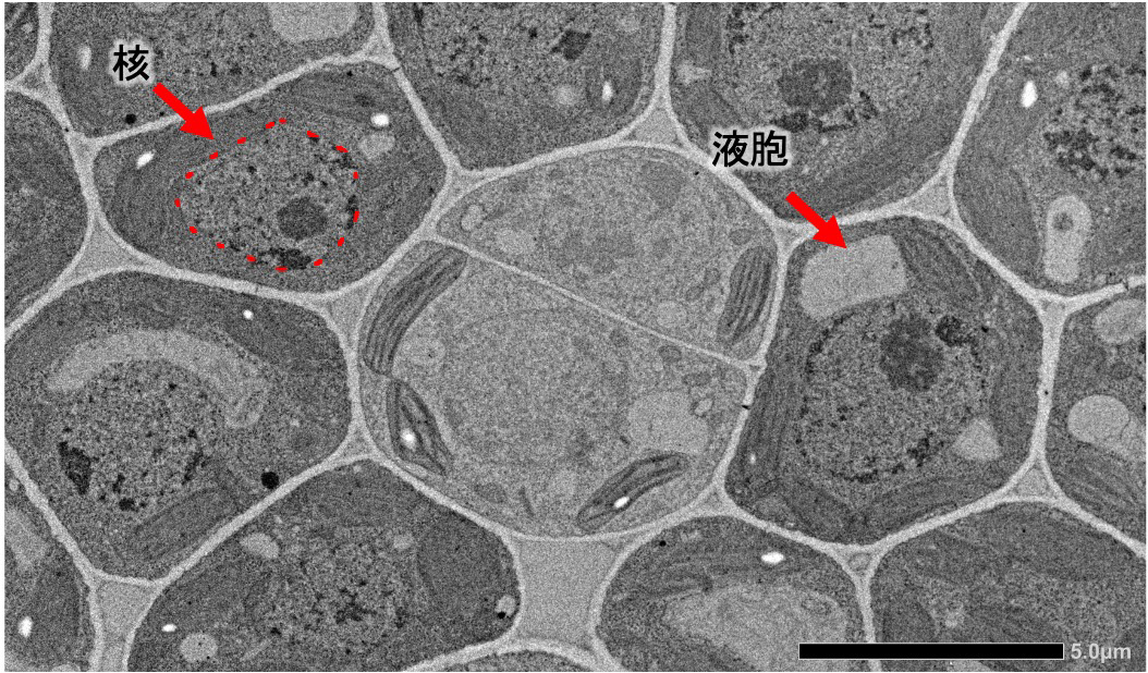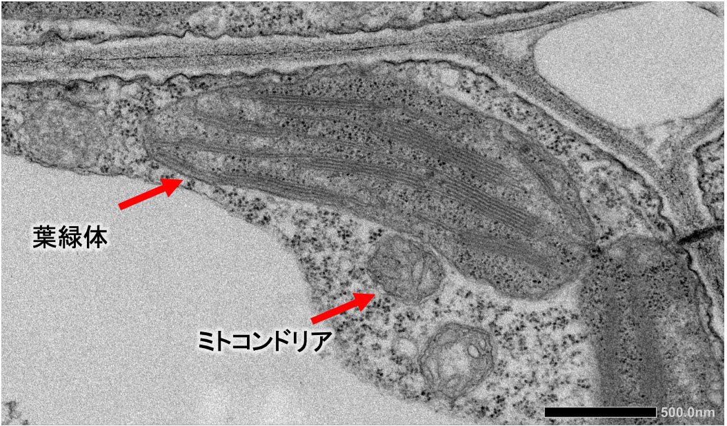 化学固定胡萝卜叶后,使用超薄切片机方法制备薄膜样品并进行TEM观察。