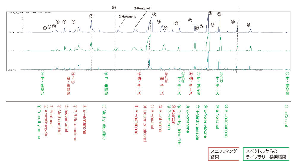 除了 ESR 方法之外,还有其他方法可以测量早期变化。这是使用GC/MS(气相色谱质谱法)方法的测量。当油因氧化而变质时,一部分会分解并产生产生气味的醛。 GC-MS 设备测量该气味成分。这是一种非常灵敏的方法,甚至可以检测少量的醛。