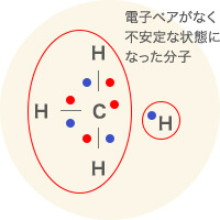 ④当连接部分分离时,两个电子(●)(●) 被分解成不稳定的分子(自由基)