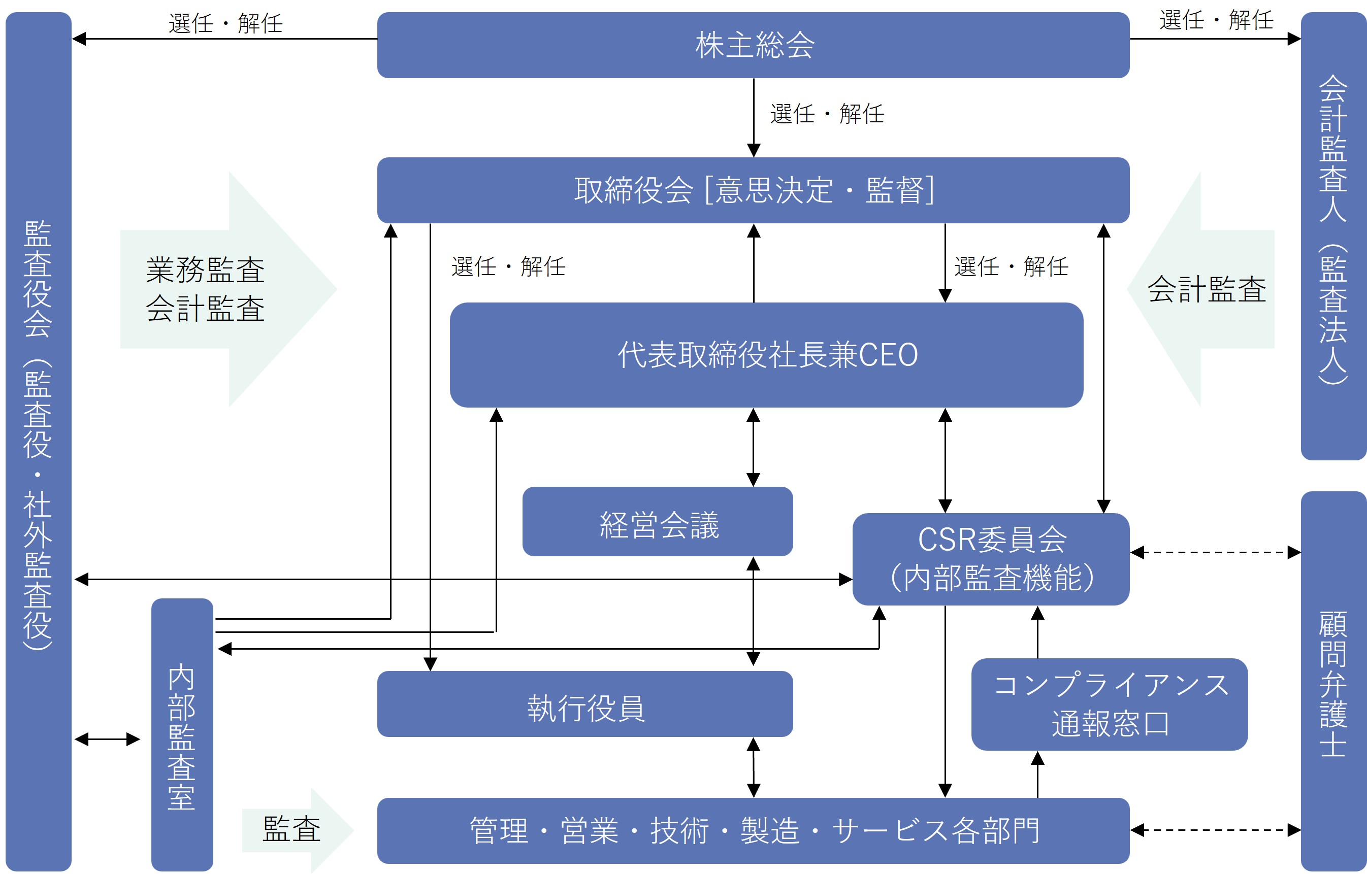 我公司实行监事会制度,由董事会和监事会对业务执行情况进行监督和审计。为了快速应对经营环境的变化,我们正在努力精简管理,包括优化董事人数(公司章程中的上限)。为了推动业务执行与监管分离,我们取消了总裁兼首席执行官、董事长和副董事长职位,并新设了董事长兼执行官和总裁兼执行官职位。我们的一些公司审计师在财务和会计方面拥有相当丰富的知识,并且我们公司的治理体系的结构使我们的公司审计师能够充分履行其监督职能,例如参加董事会会议,审计附属公司和分支机构,以及从独立于管理层的角度审计董事履行职责的情况。此外,在第78财年,董事会召开了15次会议,管理委员会召开了47次会议,管理执行委员会召开了11次会议,公司审计委员会召开了17次会议。此外,我们还成立了由总裁担任主席的“企业社会责任委员会”,以不断加强和完善整个集团的内控、合规、风险管理等。该委员会接受董事会(系统)的报告,就CSR活动提供咨询和建议,并向董事会和监事会报告。此外,内部审计部门根据内部审计规定,对公司及集团公司的业务执行和合规情况进行内部审计,并将结果报告给审计委员会和首席执行官,并通过CSR委员会报告给董事会。截至2025年6月26日,公司组织由9名董事(其中4名外部董事)和4名审计师(其中2名外部审计师)组成。截至2025年6月26日的董事会组成如下。