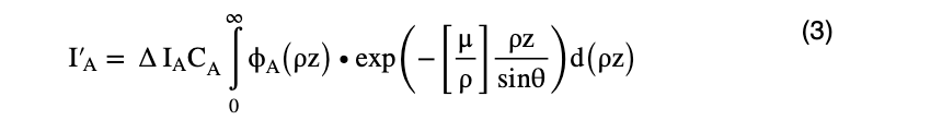 特征X射线强度ΔIA(ρz) 遭受吸收,这取决于样本中特征 X 射线的路径长度,直到这些 X 射线从样本中发射出来为止(图 3)。A由X射线探测器(置于标本外部)测量的(ρz)表示为